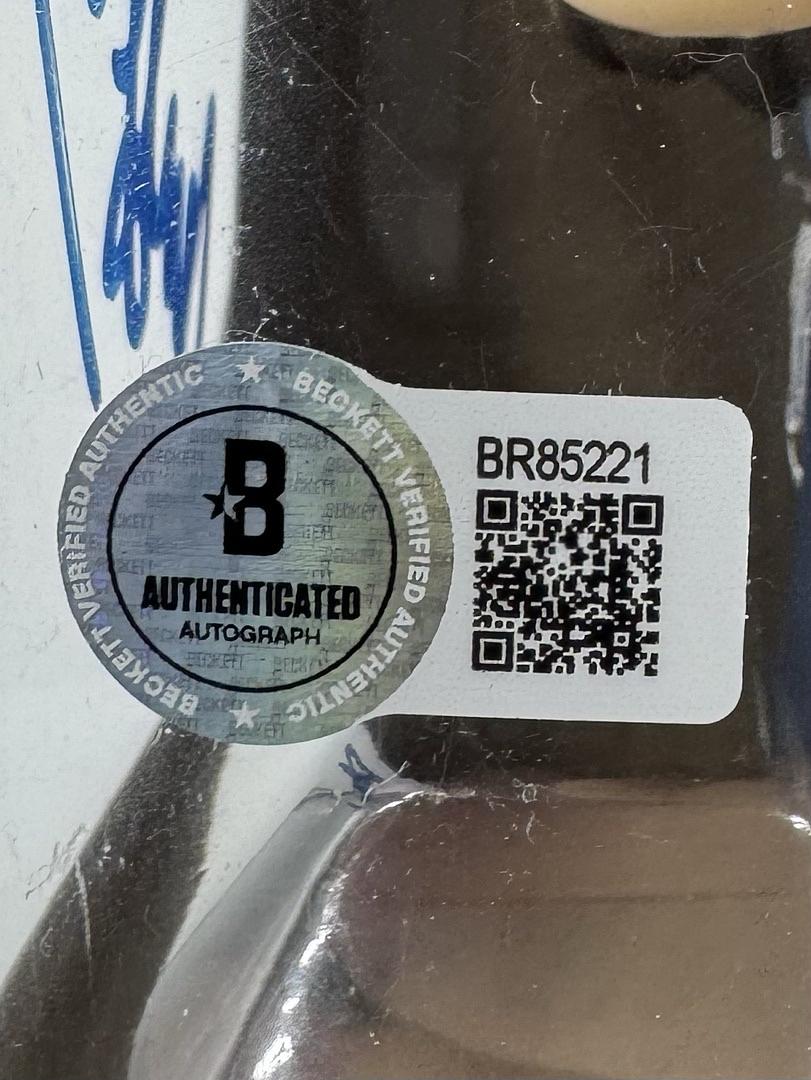Elevate your James Bond collection with this Ana De Armas signed Funko Pop #1014. Certified authentic with a Beckett Certificate of Authenticity, this collectible is a rare and valuable addition for fans and collectors alike. Don’t miss the chance to own this exclusive signed piece featuring one of the franchise’s brightest stars.