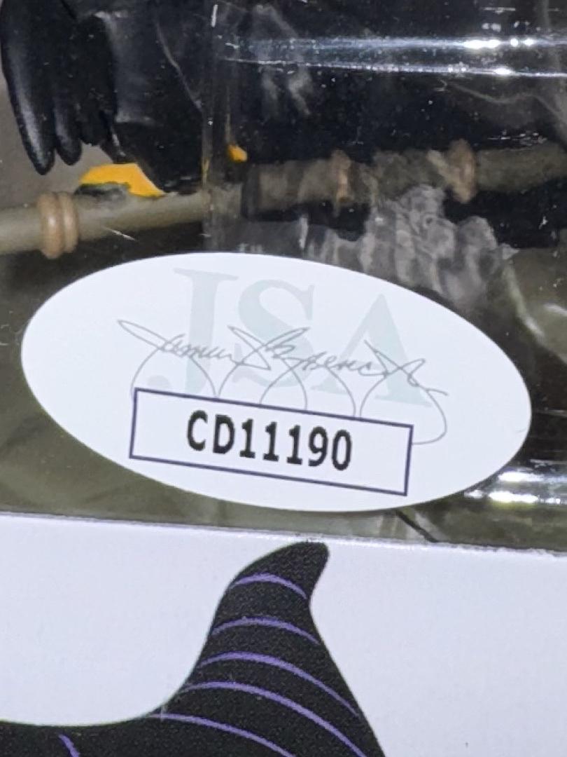 This Angelina Jolie signed Funko Pop #1082 Maleficent from Disney Villains includes a JSA COA, ensuring its authenticity. A rare and highly sought-after collectible, it offers fans a unique chance to own an authentic piece connected to the iconic actress and her unforgettable role. Perfect for collectors looking to add a genuine and standout item to their memorabilia.
