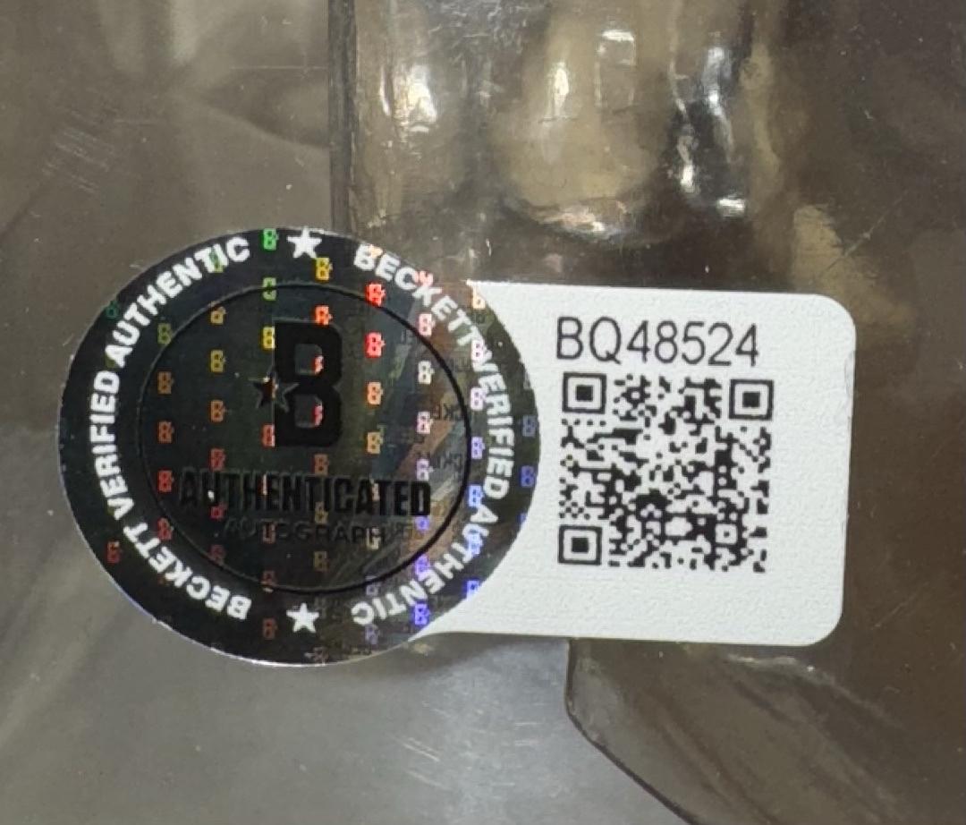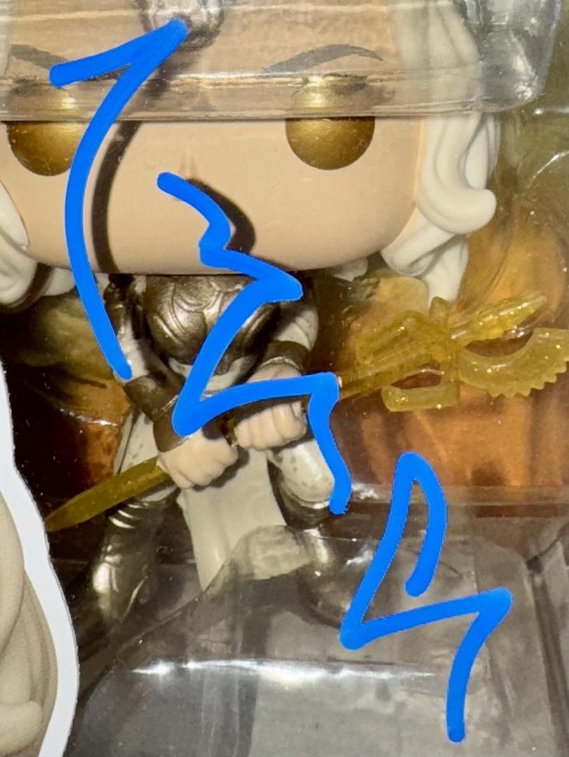 This Angelina Jolie signed Funko Pop #729 "Thena" from Eternals Marvel comes with a Beckett COA, guaranteeing its authenticity. A rare and highly collectible piece, it offers fans a unique opportunity to own an authentic item connected to the iconic actress and her powerful role. Perfect for collectors seeking a standout addition to their Marvel memorabilia.