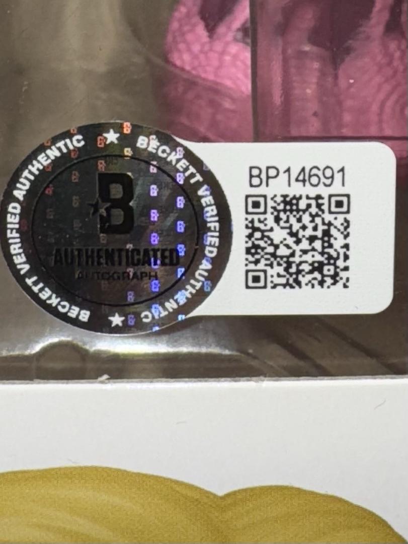 Celebrate your fandom with this exclusive Ariana Grande Signed Funko Pop #1699 Glinda from Wicked. Featuring her authentic autograph in black ink and accompanied by a Beckett Certificate of Authenticity, this collectible is a must-have for any true Ariana fan or Funko Pop collector. Add a unique piece of pop culture history to your collection today.