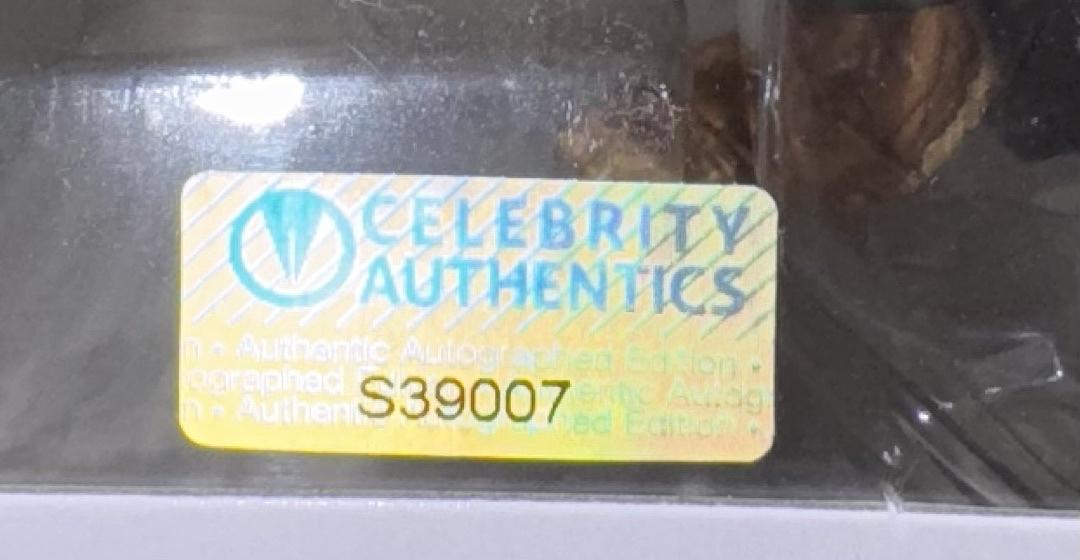 Add a rare collectible to your display with this Benicio Del Toro signed Funko Pop #1153 featuring The Wolf Man. Authenticated by Celebrity Authentics, this exclusive piece is perfect for fans and collectors seeking a unique and genuine autograph. Don’t miss the opportunity to own this striking signed Funko Pop that celebrates the talent of Benicio Del Toro.
