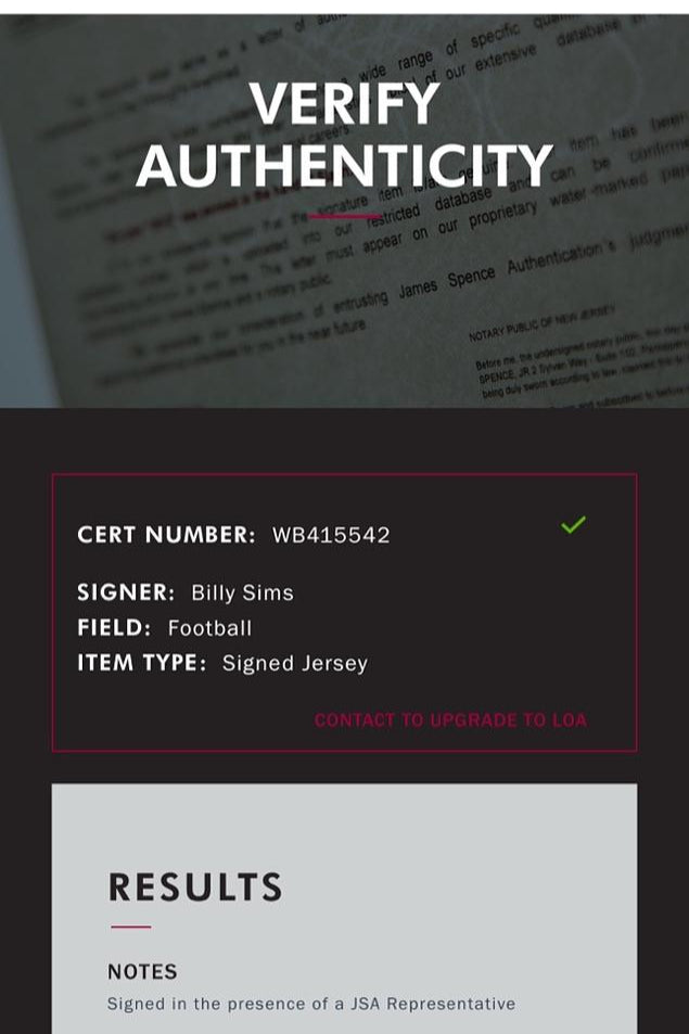Celebrate college football greatness with this Billy Sims signed custom Oklahoma Sooners jersey, featuring his "78 Heisman" inscription. Accompanied by a JSA Certificate of Authenticity, this collectible honors Sims’ legendary achievement and is a must-have for devoted fans and collectors. Own a unique piece that pays tribute to one of the sport’s most iconic players.