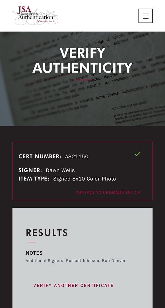 Capture the charm of Gilligan’s Island with this 8x10 photo signed by Bob Denver, Dawn Wells, and Russell Johnson, authenticated by JSA COA. This rare collectible brings together three beloved cast members, making it a must-have for fans and memorabilia collectors. Celebrate the timeless appeal of this classic show and add an authentic piece of television history to your collection today.