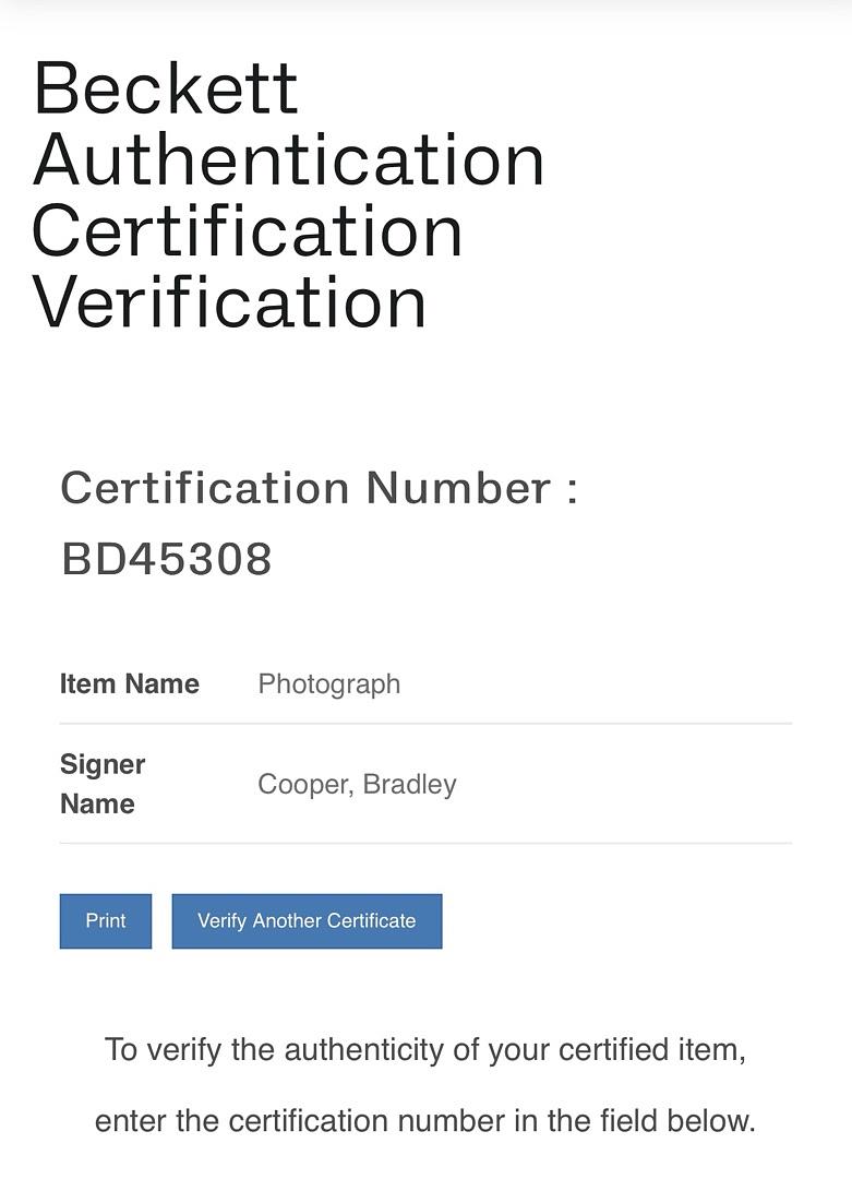 Enhance your collection with this authentic 8x10 photo of Bradley Cooper from American Sniper, personally signed and certified by Beckett COA. This collectible captures the intensity of Cooper’s iconic role, making it a must-have for fans and memorabilia enthusiasts. Secure a genuine piece of Hollywood history that stands out in any display.