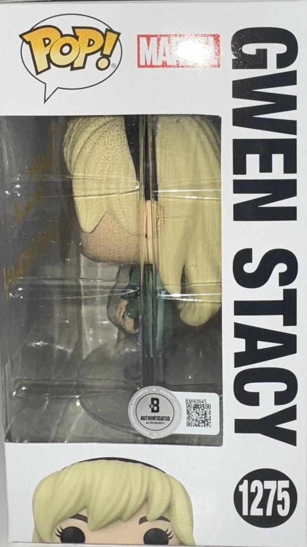 Enhance your Spider-Man collection with this Bryce Dallas Howard signed Funko Pop #1275 featuring Gwen Stacy. Certified authentic by Beckett, this collectible combines a beloved character with a genuine autograph, making it a must-have for fans and collectors. Celebrate Bryce Dallas Howard’s iconic role and add a unique, valuable piece to your display. Don’t miss the opportunity to own this exclusive signed Funko Pop.
