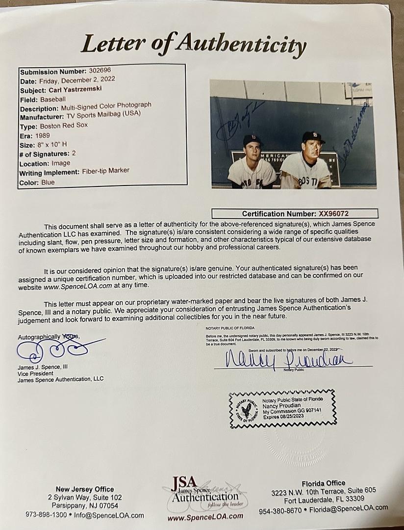 Carl Yastrzemski & Ted Williams Signed 8x10 Boston Red Sox - JSA COA