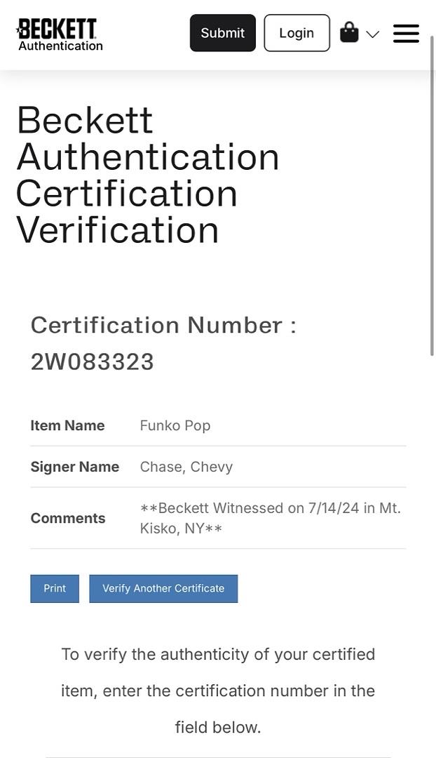Celebrate the holiday spirit with this Chevy Chase signed Funko Pop #242 featuring Clark Griswold from Christmas Vacation. Certified authentic by Beckett, this collectible pairs a beloved character with a genuine autograph, making it a must-have for fans and collectors. Add a rare, signed Funko Pop that brings the humor and charm of Clark Griswold to your display. Don’t miss the chance to own this exclusive memorabilia.