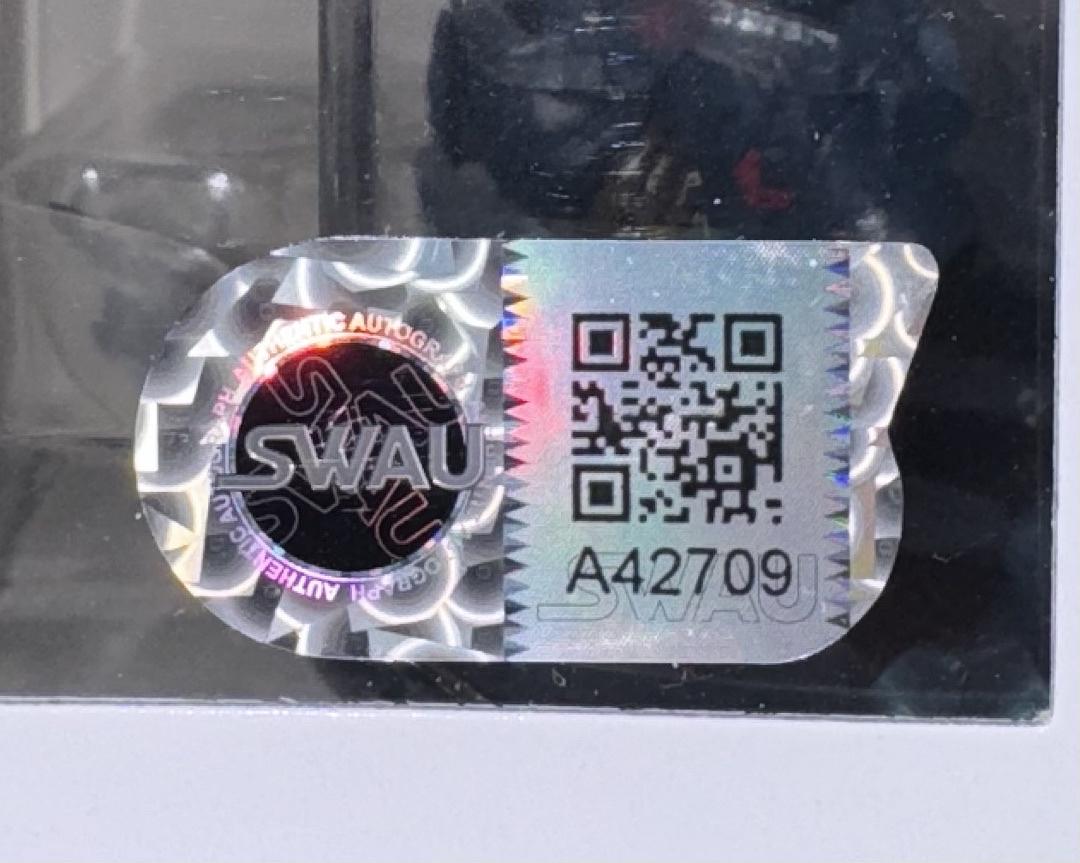 This Chris Evans signed Funko Pop #573 Captain America comes with SWAU certification, guaranteeing its authenticity. A rare and highly sought-after collectible, it offers fans a unique opportunity to own an authentic piece connected to the iconic actor and his legendary role. Perfect for collectors looking to add a genuine and standout item to their memorabilia.