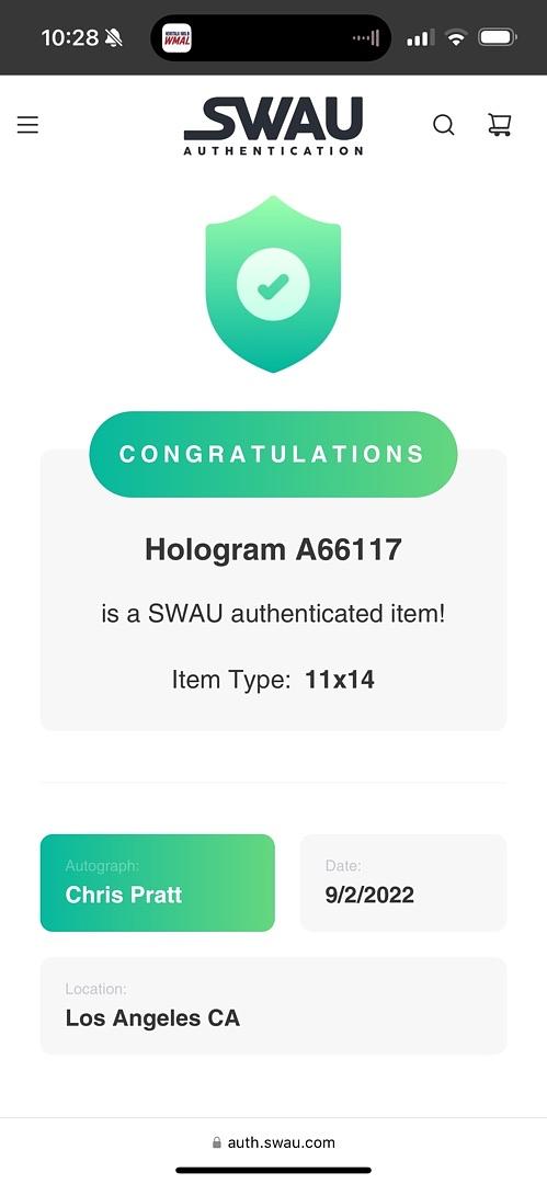 Enhance your Marvel memorabilia with this 11x14 photo signed by Chris Pratt as Star-Lord from Guardians of the Galaxy. Certified authentic by SWAU, this collectible is a must-have for fans and collectors seeking a genuine autograph from one of the MCU’s most beloved heroes. Don’t miss the opportunity to add this standout piece to your collection.