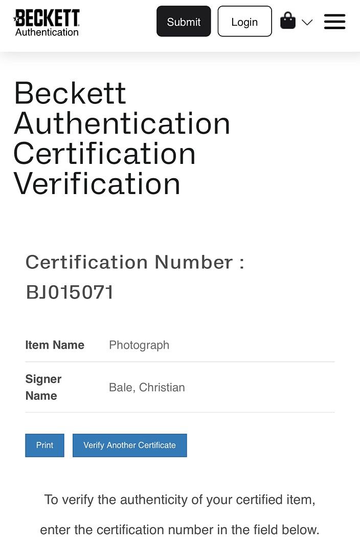 NOTE: THIS IS ONLY SIGNED BY CHRISTIAN BALE