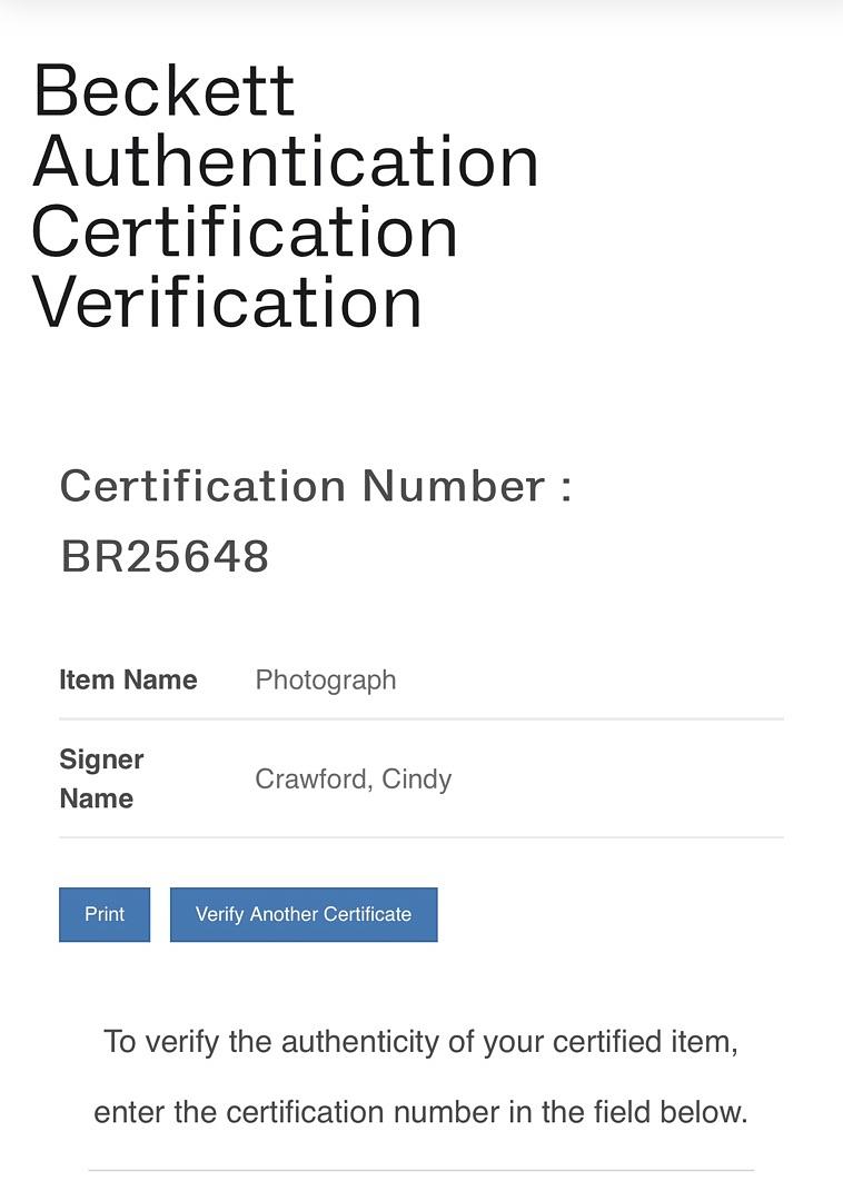 This signed 11x14 photo of Cindy Crawford showcases the iconic supermodel in a captivating pose, highlighting her timeless beauty and charisma. Authenticated with a Beckett Certificate of Authenticity, this collectible is a prized piece for serious autograph collectors and fans of fashion history. The high-resolution image and genuine signature make it a standout addition to any memorabilia collection.