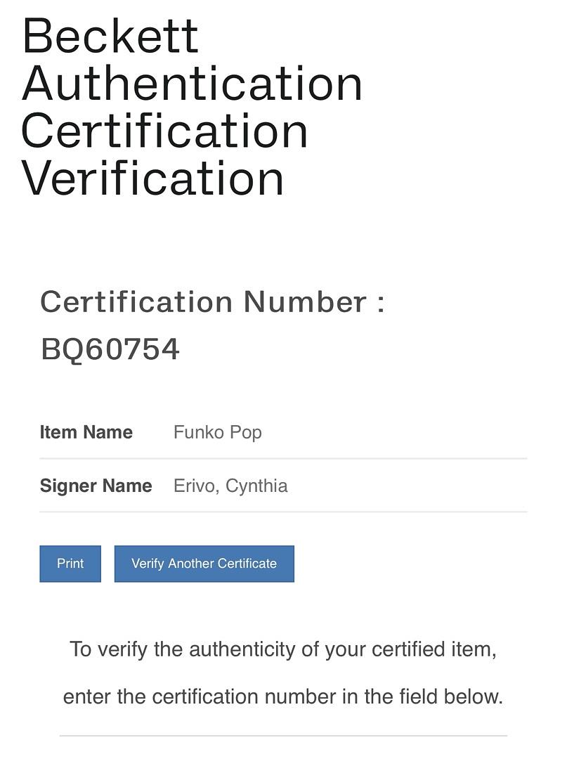 Elevate your Wicked collection with this Cynthia Erivo signed Funko Pop #1696 "Elphaba." Authenticated by Beckett COA, this collectible captures the powerful presence of the iconic character, making it a must-have for fans and collectors seeking a genuine and valuable addition to their display.