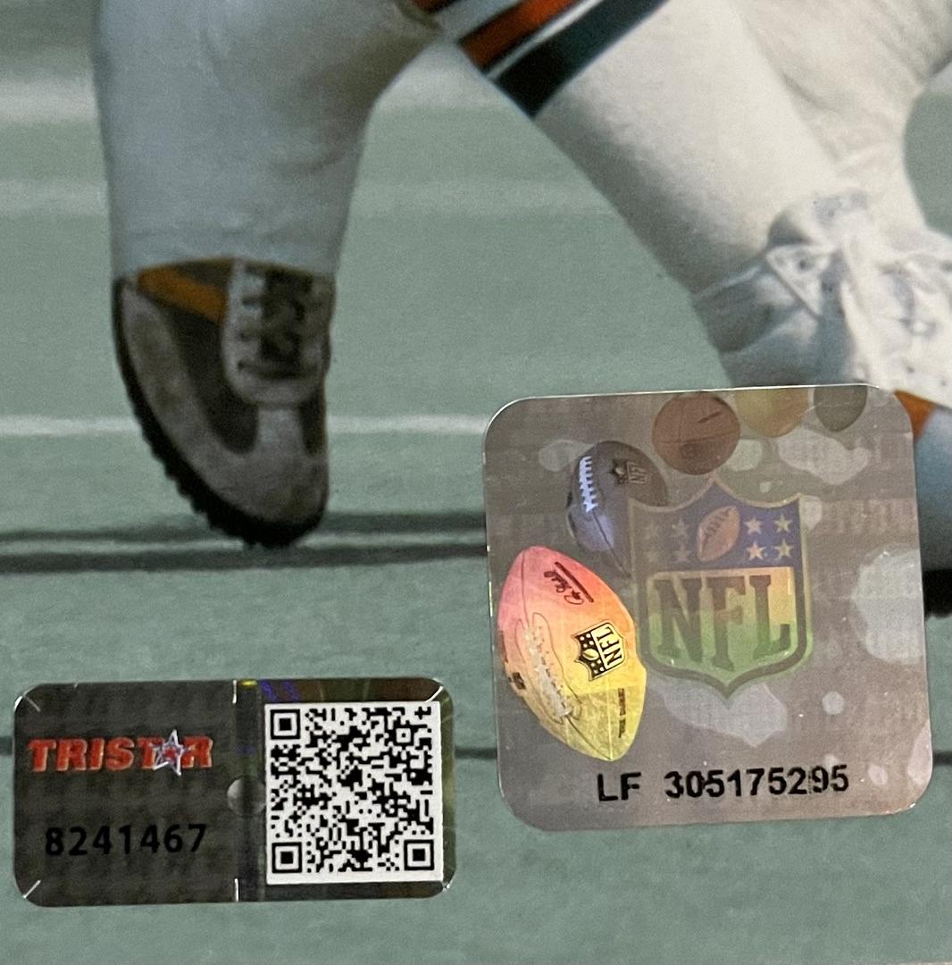 Secure a piece of football greatness with this 8x10 photo signed by Dan Marino of the Miami Dolphins. Certified authentic by Tri-Star, this collectible is a must-have for fans and collectors eager to celebrate one of the NFL’s legendary quarterbacks. Add this iconic autograph to your collection and honor a true sports icon.
