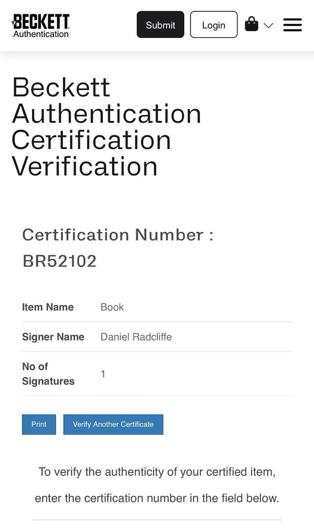 Own a rare collectible with the Daniel Radcliffe autographed edition of "Deathly Hallows," accompanied by a Beckett Certificate of Authenticity. This verified signature from the actor who portrayed Harry Potter adds exceptional value and a personal connection to the final chapter of the beloved series. Perfect for fans and collectors, this signed edition is a treasured keepsake that celebrates the magic and legacy of Harry Potter. Secure this exclusive piece of wizarding history today.
