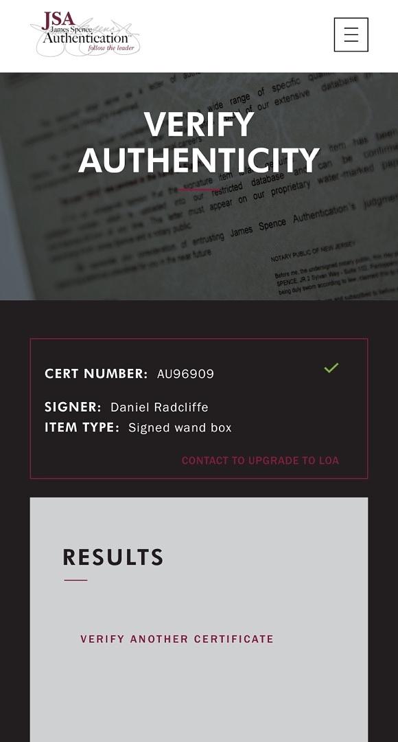 Own a magical collectible with the Daniel Radcliffe Signed Replica Wand from Harry Potter, authenticated by JSA COA. This exclusive item features Radcliffe’s genuine signature on a detailed replica wand, making it a must-have for fans and collectors alike. Perfect for display, it offers verified authenticity and a special connection to the beloved wizarding world. Don’t miss the chance to add this enchanting piece to your collection.