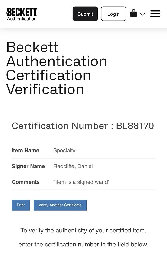 Own a magical collectible with the Daniel Radcliffe Signed Replica Wand from Harry Potter, authenticated by JSA COA. This exclusive item features Radcliffe’s genuine signature on a detailed replica wand, making it a must-have for fans and collectors alike. Perfect for display, it offers verified authenticity and a special connection to the beloved wizarding world. Don’t miss the chance to add this enchanting piece to your collection.