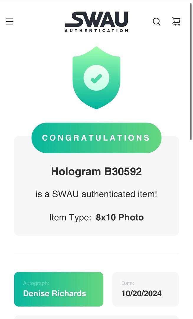 Enhance your James Bond collection with this 8x10 photo of Denise Richards as Christmas Jones, personally signed and inscribed, authenticated by SWAU. This unique collectible offers a special connection to Richards’ iconic role, making it a standout addition for fans and autograph collectors. Don’t miss the chance to own this authentic piece of Bond memorabilia with a personalized touch.