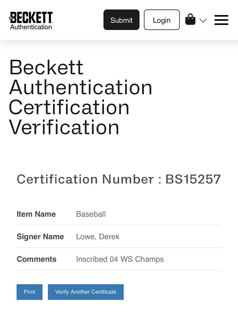 Celebrate a historic victory with this Derek Lowe autographed Rawlings 2004 Official World Series baseball, featuring the "04 WS Champs" inscription. Accompanied by a Beckett Certificate of Authenticity, this authenticated collectible honors Lowe’s pivotal role in the Boston Red Sox’s championship win. Perfect for collectors and baseball fans, this signed baseball is a valuable keepsake that captures a memorable moment in sports history. Secure this exclusive piece today.