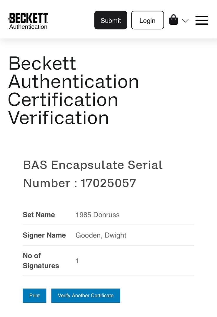 Doc Gooden 1985 Signed card Donruss - Beckett COA 10