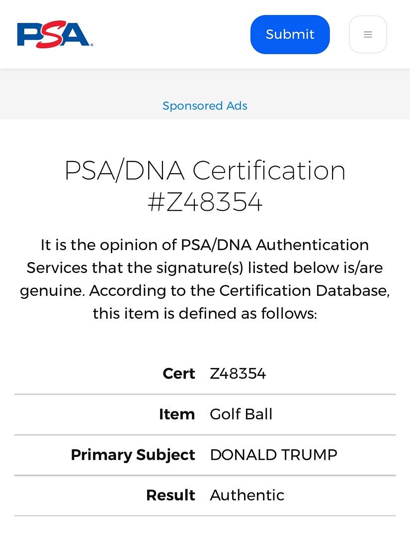 Donald Trump Signed Golf Ball *VERY RARE* - PSA COA #02