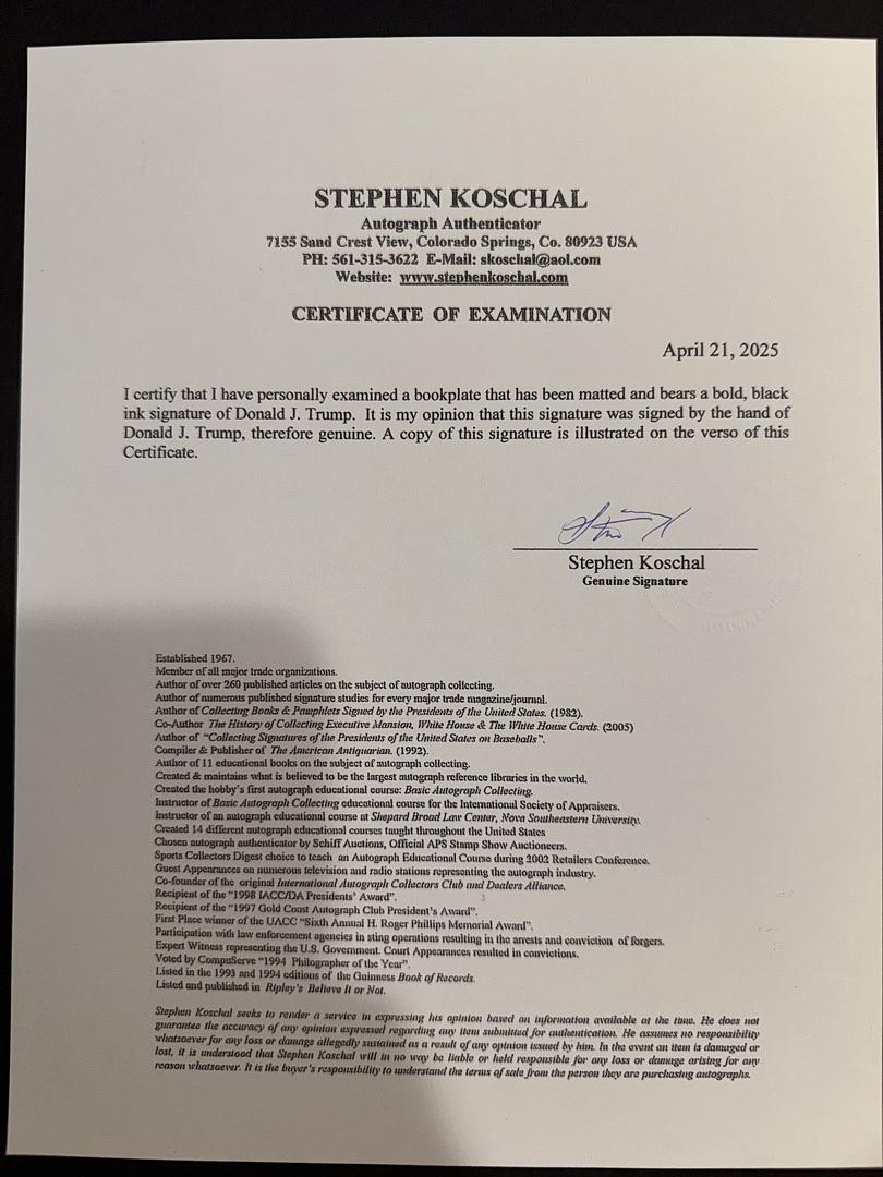 Donald Trump Signed & Matted Bookplate Cut Signature - Koschal COA #04