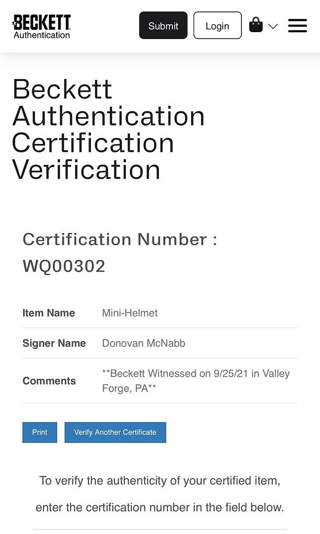 Own a piece of Philadelphia Eagles history with this Donovan McNabb signed mini-helmet, authenticated by Beckett for assured legitimacy. This collectible captures the legacy of one of the Eagles’ most iconic quarterbacks, making it a must-have for passionate fans and serious memorabilia collectors. Display this certified mini-helmet proudly and celebrate McNabb’s impact on the game.