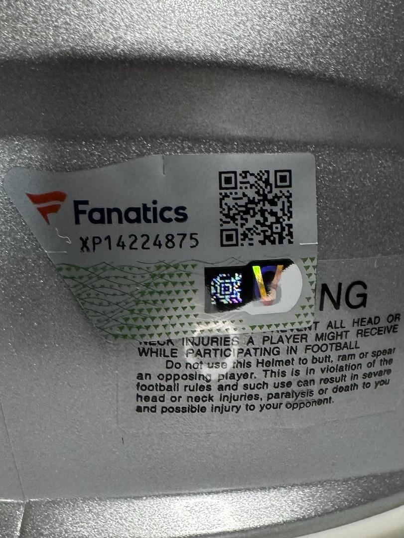 Celebrate your fandom with this officially signed New England Patriots silver mini-helmet by star quarterback Drake Maye. Autographed in black sharpie, this collectible comes with a Fanatics Certificate of Authenticity, ensuring its genuine value. Perfect for display, it’s a must-have for any Patriots supporter looking to own a piece of the game.