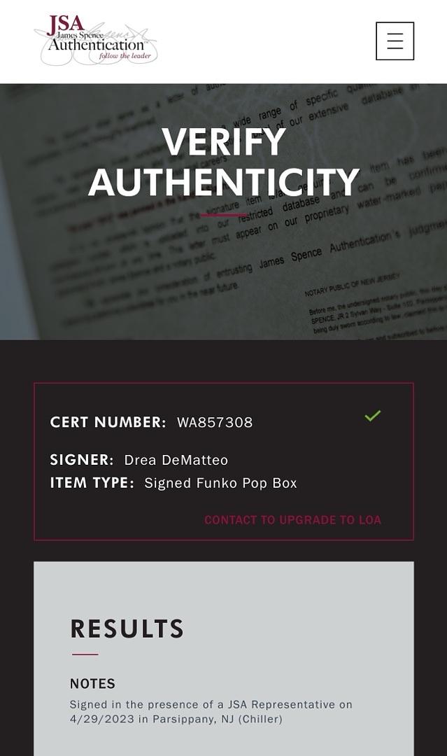 Enhance your Sopranos collection with this Drea De Matteo signed Funko Pop #1291 featuring Tony Soprano. Certified authentic by JSA, this collectible pairs a legendary character with a genuine autograph, making it a must-have for fans and collectors. Celebrate Drea De Matteo’s iconic role and add a rare, signed Funko Pop that brings the drama of The Sopranos to your display. Don’t miss the chance to own this exclusive memorabilia.