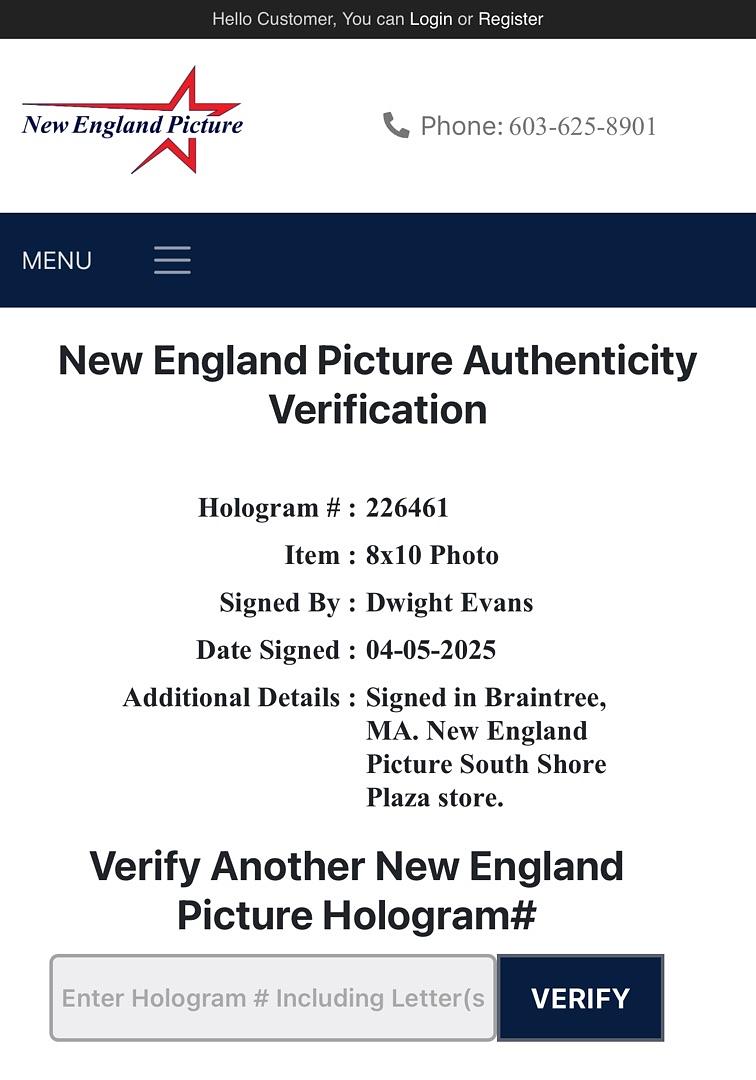 Celebrate Red Sox history with this Dwight Evans signed 8x10 photo, authenticated by New England Picture COA. This collectible captures the legacy of a legendary player, offering fans and collectors a valuable and authentic piece to showcase. Add this rare autograph to your memorabilia and honor a true baseball icon.