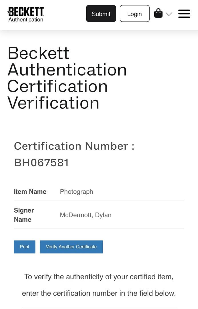 This 11x14 photo of Dylan McDermott, signed by the actor known for his role in American Horror Story, comes with a Beckett Certificate of Authenticity. A verified collectible, it offers a valuable addition for fans and serious autograph collectors. The striking image captures McDermott’s compelling presence, making it a distinguished piece of television memorabilia.