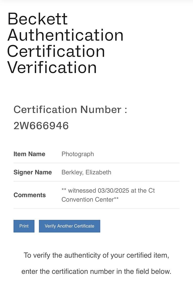 Capture a piece of Hollywood glamour with this sexy signed 8x10 photo of Elizabeth Berkley. Authenticated by Beckett's Certificate of Authenticity, this collectible combines iconic charm with verified legitimacy, making it a standout addition to any autograph collection or fan display. Own a genuine keepsake that celebrates Elizabeth Berkley’s timeless appeal.