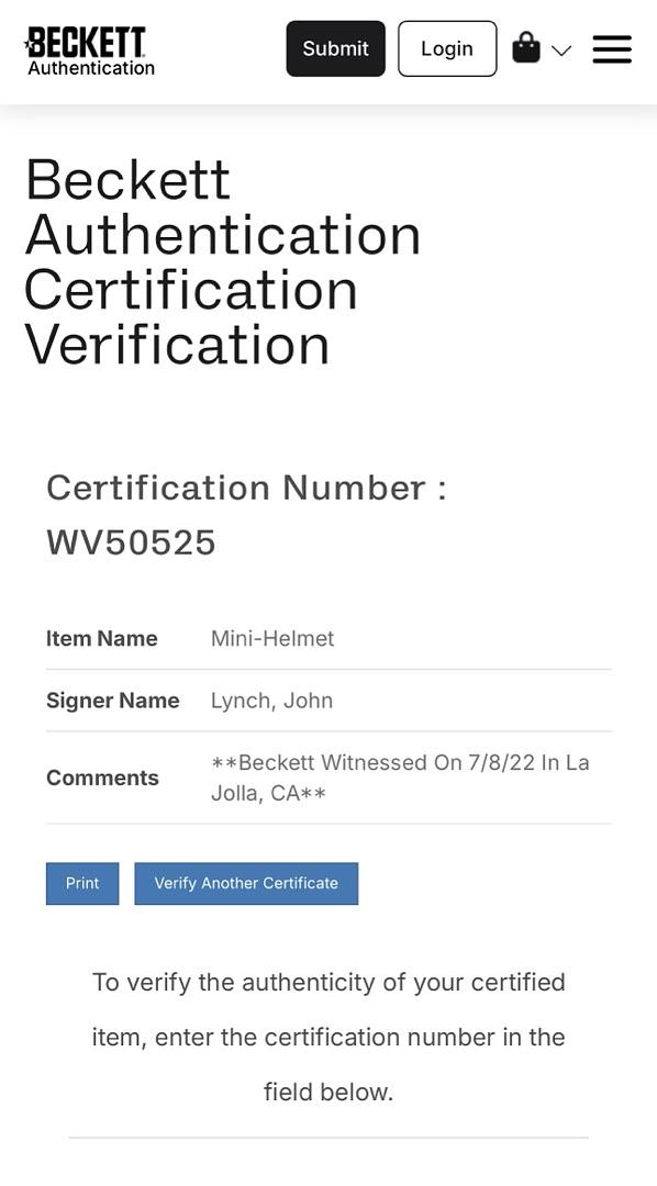 Own a piece of Broncos history with this mini-helmet signed by John Lynch, a standout safety known for his fierce play and leadership. Certified authentic by Beckett, this collectible is a must-have for any Denver Broncos fan or sports memorabilia enthusiast. Its compact size makes it perfect for display, allowing you to showcase your admiration for one of football’s great defenders.