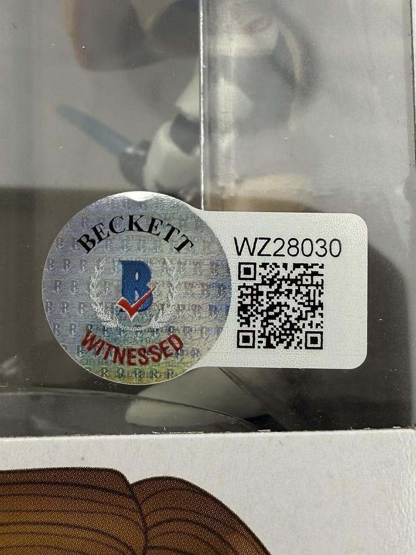 Celebrate your Star Wars fandom with this authentic Ewan McGregor signed "Obi Wan Kenobi" Funko #270. Verified by Beckett Authentication, this collectible offers both a standout display piece and a valuable investment. Perfect for any collector, it brings the legendary Jedi to life with undeniable authenticity and charm. Don’t miss the chance to own a rare autograph from the iconic Star Wars prequel trilogy.