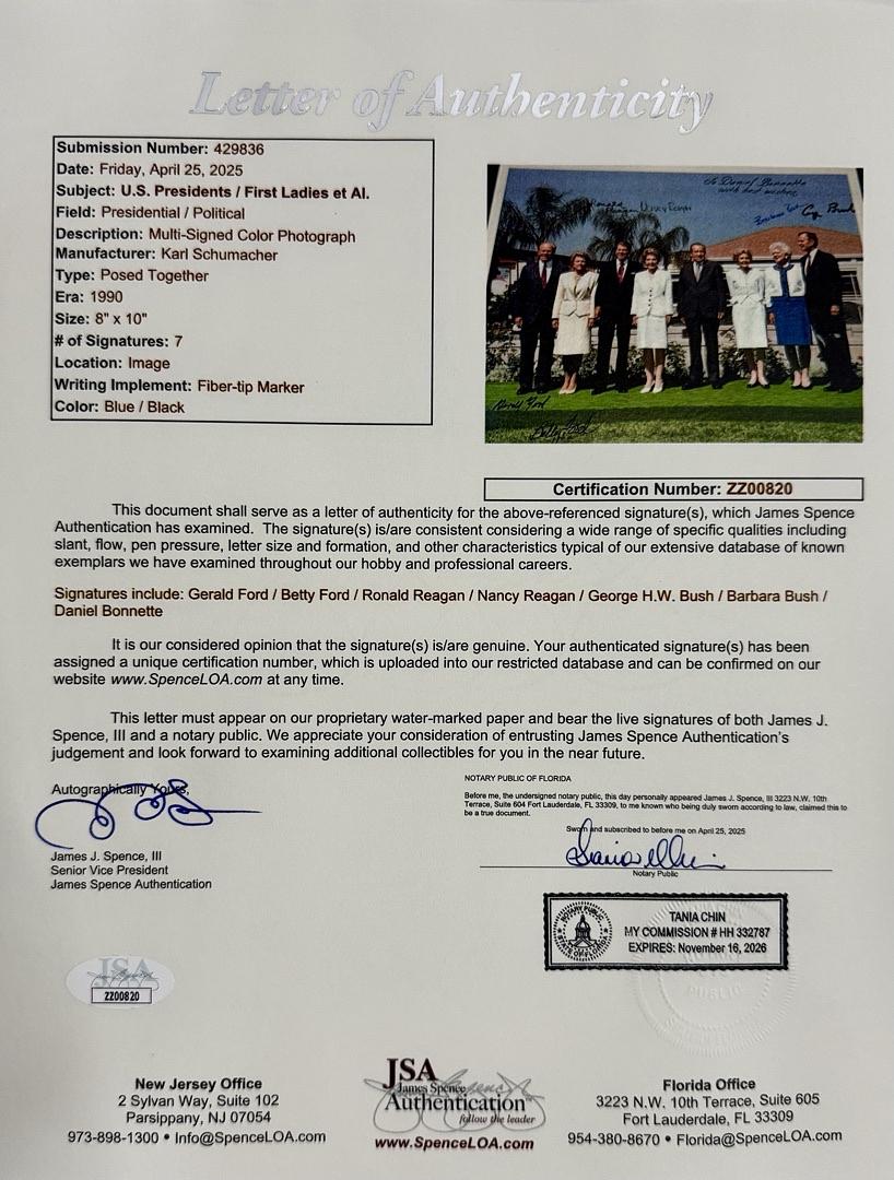 Gerald & Betty Ford, Ronald and Nancy Reagan and George and Barbara Bush Signed 8x10 (Bush's personalized) *RARE* - JSA COA