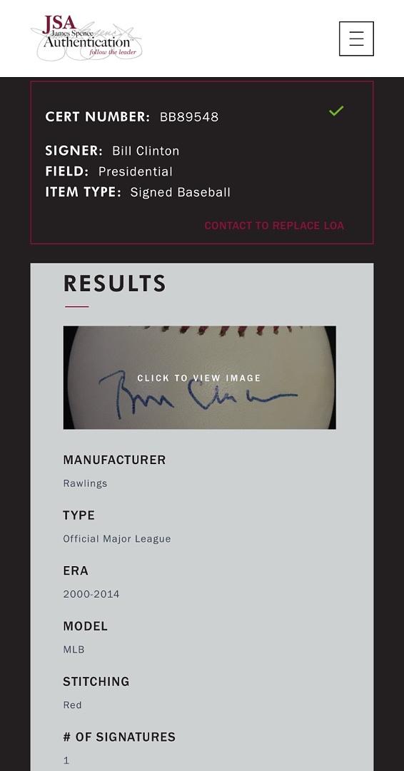 Own a rare and prestigious collectible with this Former President Bill Clinton autographed Rawlings Official ROMLB (Selig) baseball. Accompanied by a JSA Certificate of Authenticity and a full letter of authenticity, this authenticated baseball offers a unique connection to the 42nd President of the United States. Perfect for collectors and history enthusiasts, this signed baseball is a distinguished keepsake that honors a remarkable legacy. Secure this exclusive and valuable collectible today.