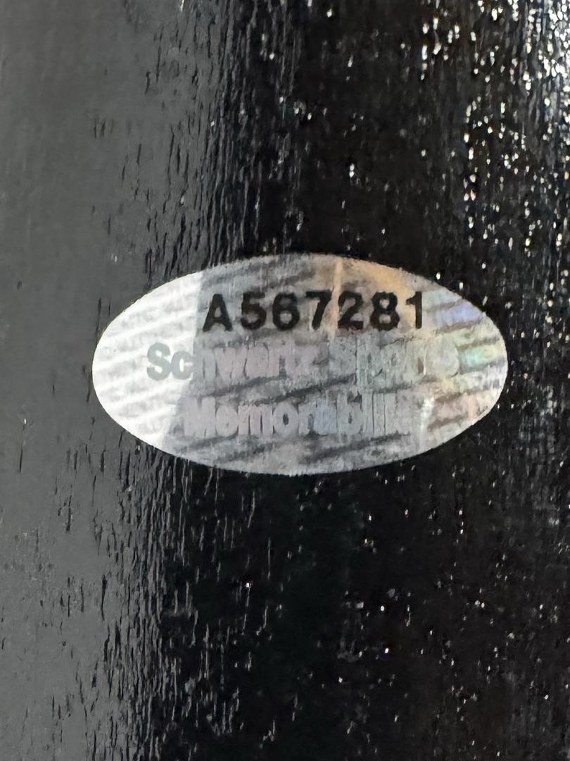 Celebrate a legendary career with this Frank Thomas autographed Black Louisville Slugger baseball bat. Accompanied by a Schwartz Sports Certificate of Authenticity, this authenticated bat is a prized collectible for baseball fans and memorabilia collectors alike. Own a unique piece of baseball history and honor the legacy of one of the game’s greatest hitters. Secure this exclusive signed bat today.