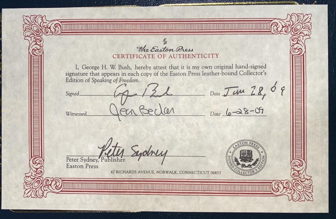 George Bush Autographed Speaking of Freedom Slipcase Easton Press