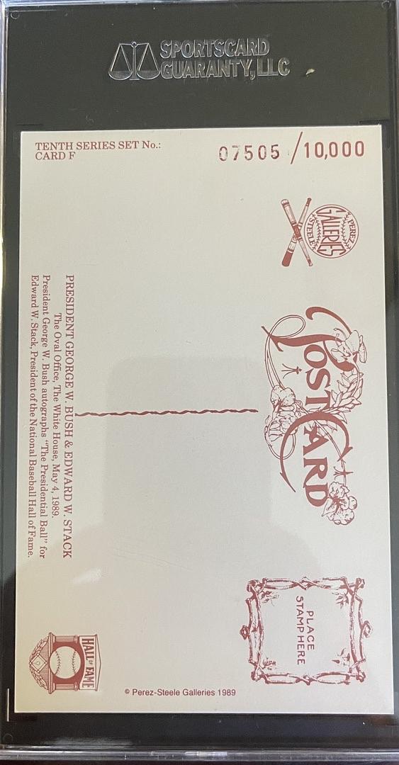 This 1989 Perez-Steele card, signed by George Bush and graded A by SGC, is a remarkable collectible for any presidential memorabilia enthusiast. Its pristine condition and verified authenticity make it a valuable addition to your collection, offering both historical significance and lasting appeal. Don’t miss the chance to own this distinguished piece of history.