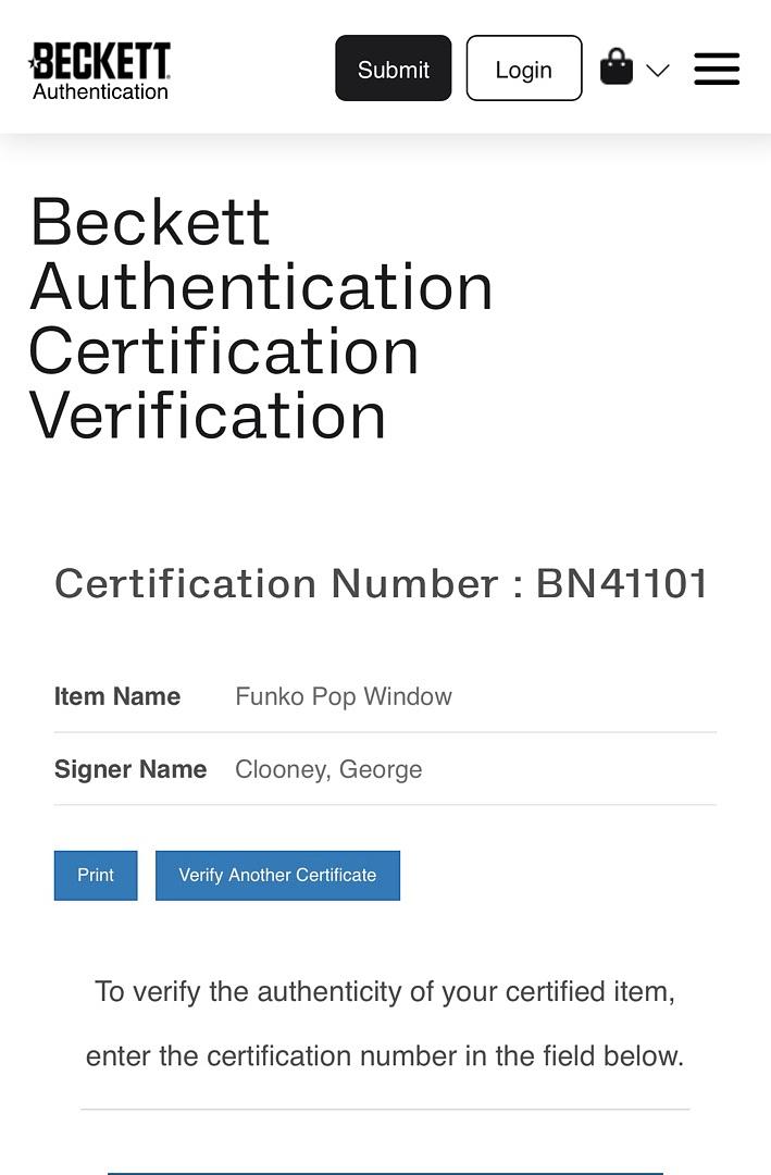 George Clooney Signed Funko Pop #314 Batman (Blue Ink) - Fanatics Beckett COA #3
