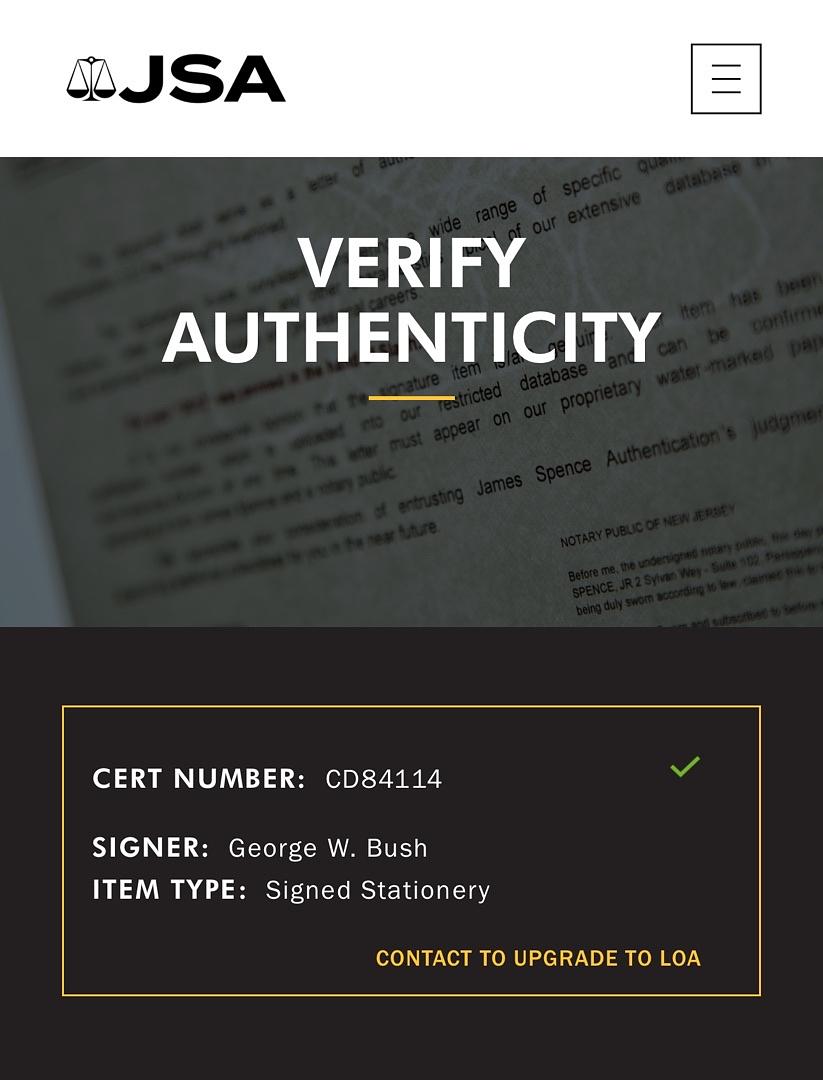 This rare George W. Bush signed presidential card, personalized and authenticated by JSA, is a distinguished addition for serious collectors. Its rarity and official certification underscore its value, making it an exceptional piece that captures a unique moment in presidential memorabilia. Ideal for experts seeking authenticity and exclusivity in their collection. This is the ONLY such card the Splendid Splinter team has ever seen.