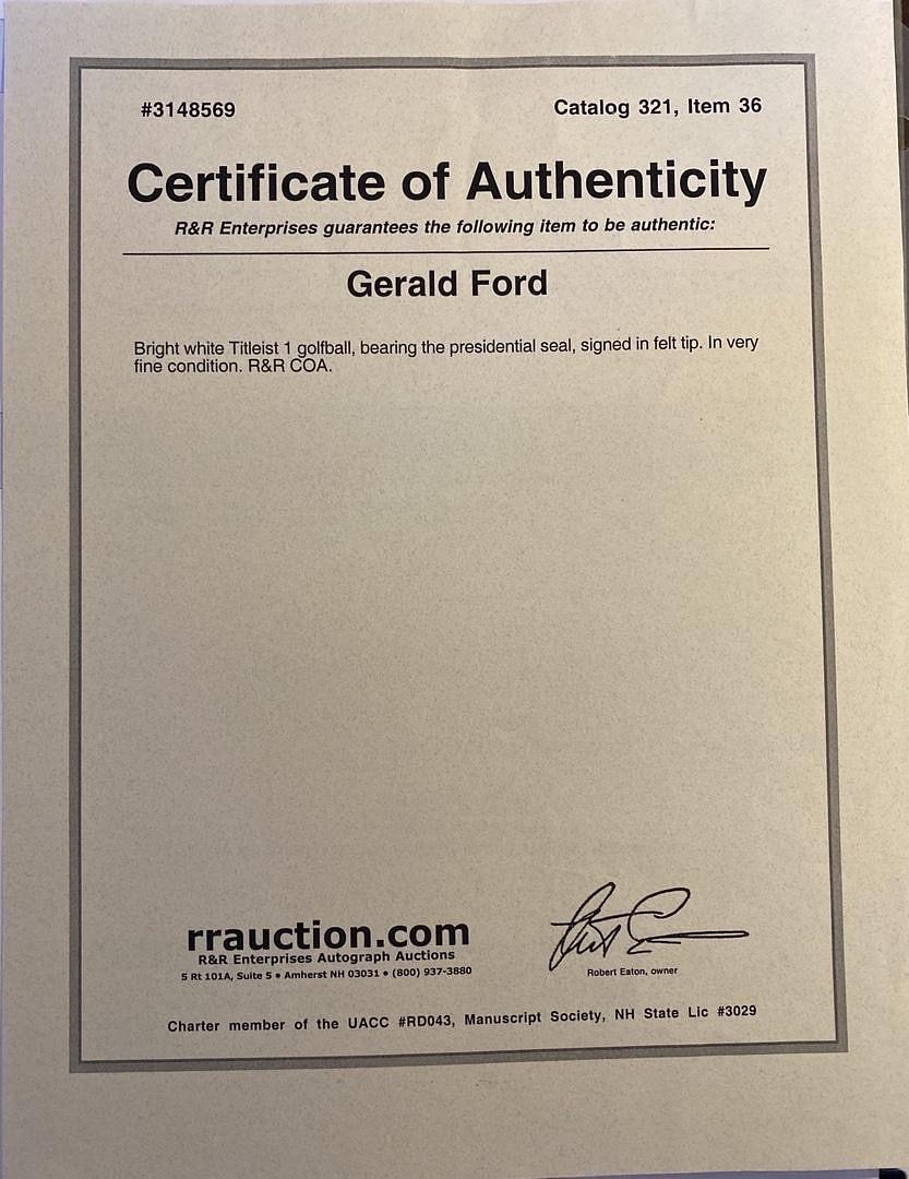Gerald Ford signed Presidential Seal golf ball *RARE* - R&R Auctions COA