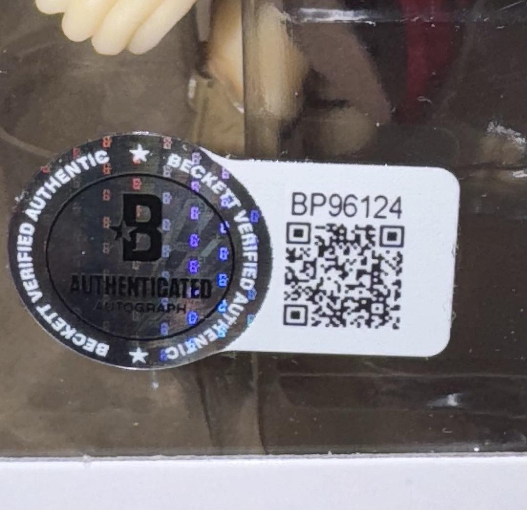 Own a powerful collectible with this Gerard Butler signed Funko Pop #1473 "Leonidas." Authenticated by Beckett with a Certificate of Authenticity, this piece offers verified value and a striking tribute to the iconic Spartan king. Perfect for fans and collectors seeking a genuine and memorable addition.