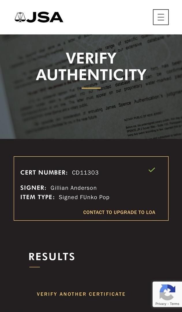 Add a striking piece to your collection with this Funko Pop #1613 featuring Dana Scully, signed by Gillian Anderson in vibrant blue ink. Certified authentic by JSA COA, this collectible guarantees genuine value and exclusivity. Perfect for fans of The X-Files and autograph collectors, it’s a unique tribute to an iconic character. Don’t miss the chance to own this exclusive signed Funko Pop and elevate your memorabilia display.