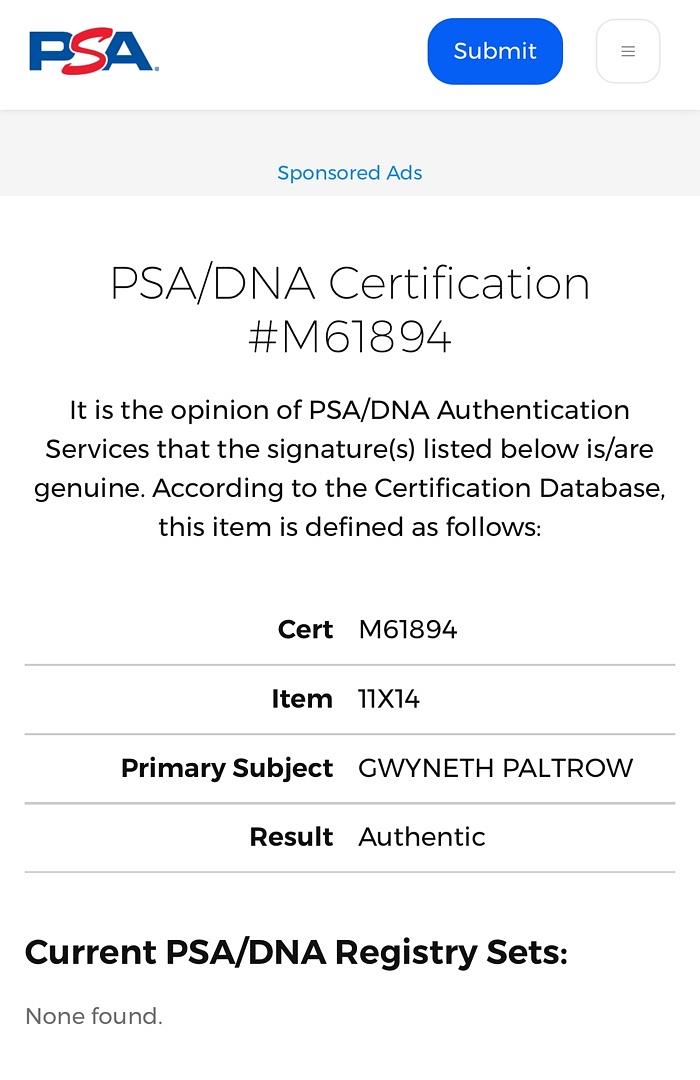 This 11x14 photo of Gwyneth Paltrow as Emma is signed and authenticated by PSA COA, ensuring expert verification. A refined collectible for fans and serious collectors, it captures the elegance of Paltrow’s iconic role with trusted certification.