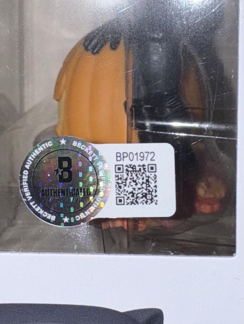 This Halle Berry signed Funko Pop #507 Catwoman features a vibrant blue ink autograph and comes with a Beckett COA to ensure authenticity. A rare and striking collectible, it offers fans a unique opportunity to own an authentic piece connected to the iconic actress and her memorable role. Perfect for collectors looking to add a bold and genuine item to their memorabilia.
