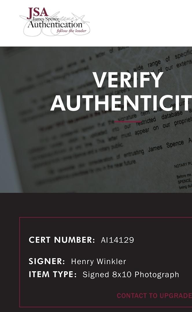 Henry Winkler Signed 8x10 Photo (Happy Days) - JSA COA