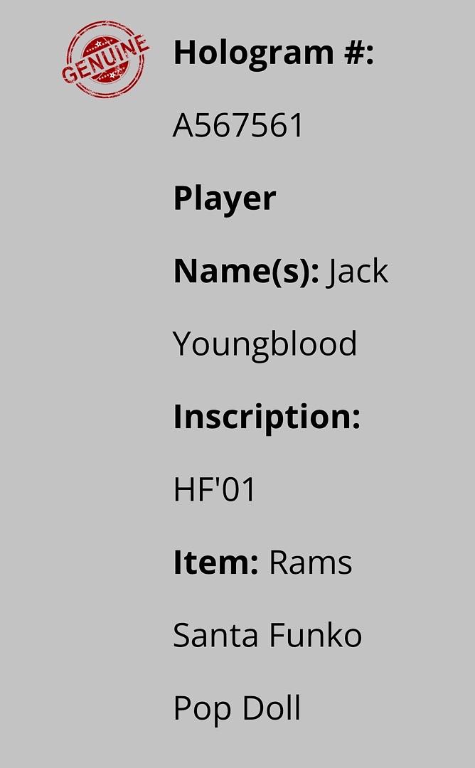 Celebrate football greatness with this Jack Youngblood signed Funko Pop #195 “Rams Santa,” featuring a special Hall of Fame inscription. Certified authentic by Schwartz, this collectible is a rare tribute to a legendary player, perfect for sports fans and collectors. Add this unique signed Funko Pop to your collection and honor the legacy of an NFL icon. Don’t miss your chance to own this exclusive piece of memorabilia.
