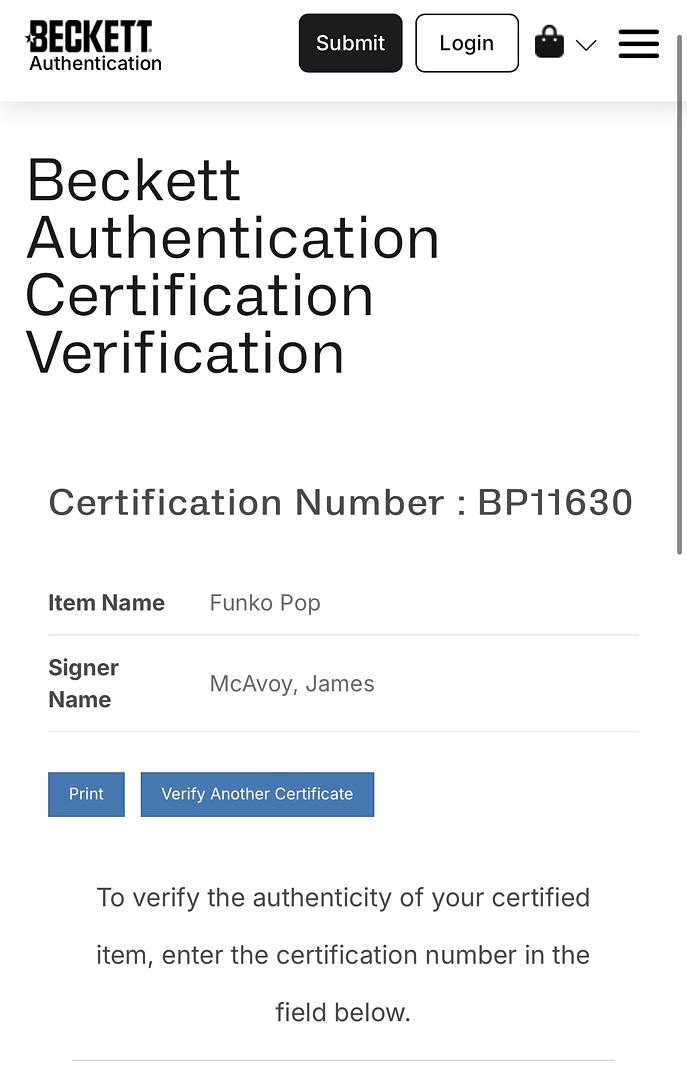 Own a piece of Marvel history with this James McAvoy signed Funko Pop #641 "Professor X." Authenticated by Beckett, this collectible captures the iconic character in a unique, stylized form. Perfect for fans and collectors, it adds a striking display piece and lasting value to your collection. Don’t miss the chance to own this rare autograph from the acclaimed actor who brings Professor X to life.