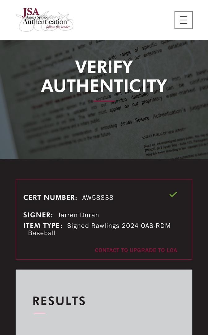 Celebrate a standout achievement with this Jaren Duran autographed Rawlings Official 2024 All Star Game MVP baseball. Accompanied by a JSA Certificate of Authenticity, this authenticated collectible honors Duran’s exceptional performance and makes a prized addition for any sports memorabilia collector. Secure this exclusive signed baseball and own a piece of baseball history today.