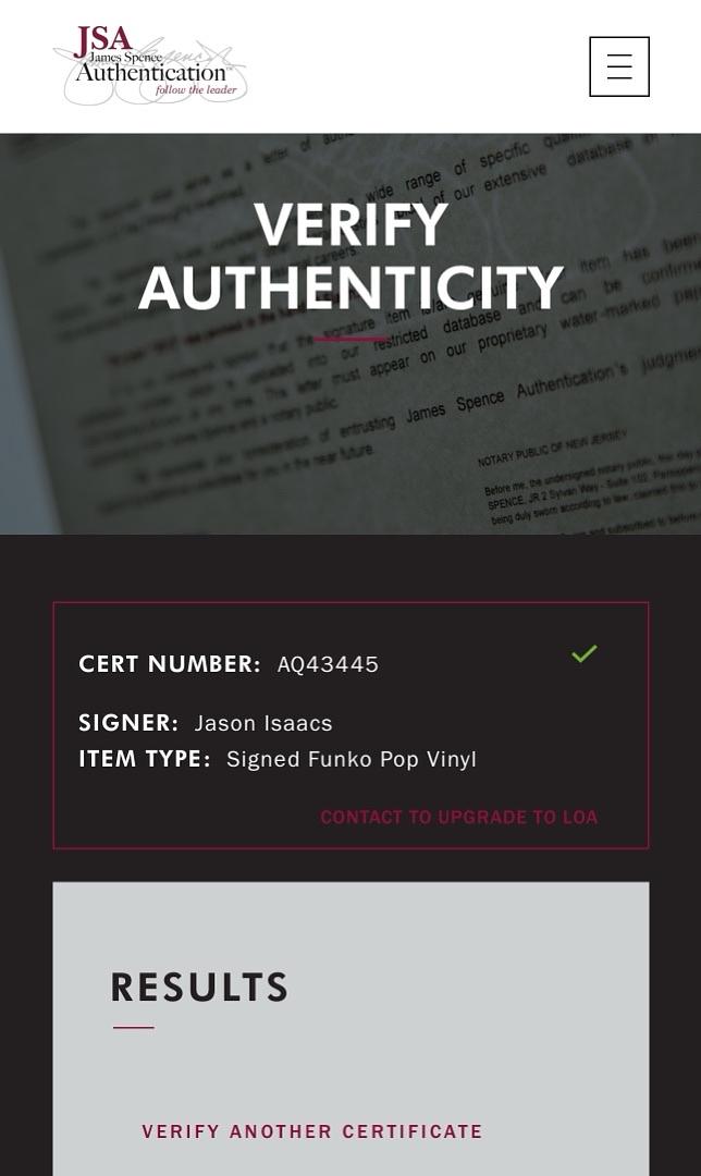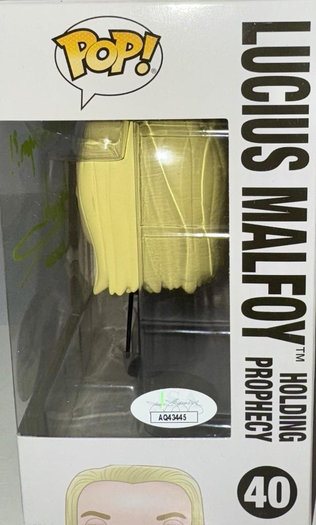 Add a unique collectible to your Harry Potter collection with this Jason Isaacs signed Funko Pop #40 "Lucius Malfoy." Certified authentic by JSA with a Certificate of Authenticity, this piece features a genuine autograph along with the character’s memorable quote, "How Dare You!" Perfect for fans and collectors, it’s a rare and special addition that celebrates one of the series’ most iconic characters. Don’t miss the chance to own this exclusive and authenticated treasure.
